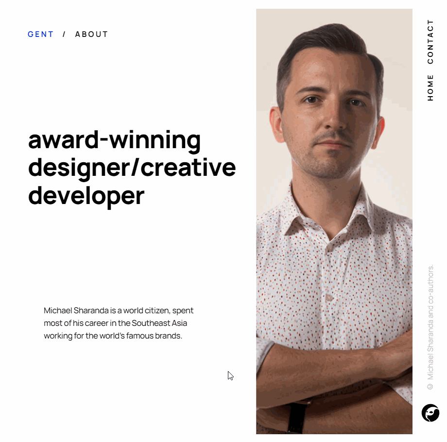 - 타이틀인 "award-winningdesigner/creativedeveloper" 글자는 각 글자를 <span>태그로 감싸서 animation-delay를 이용.