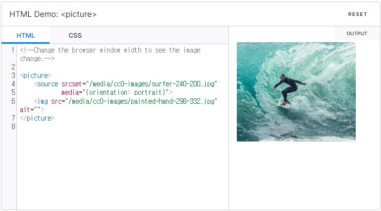 ① <picture> 태그 안에는 0개 이상의 <source>요소와 1개의 <img>요소가 있는데, 주의할 점으로 <img>는 항상 마지막에 위치해야 함.