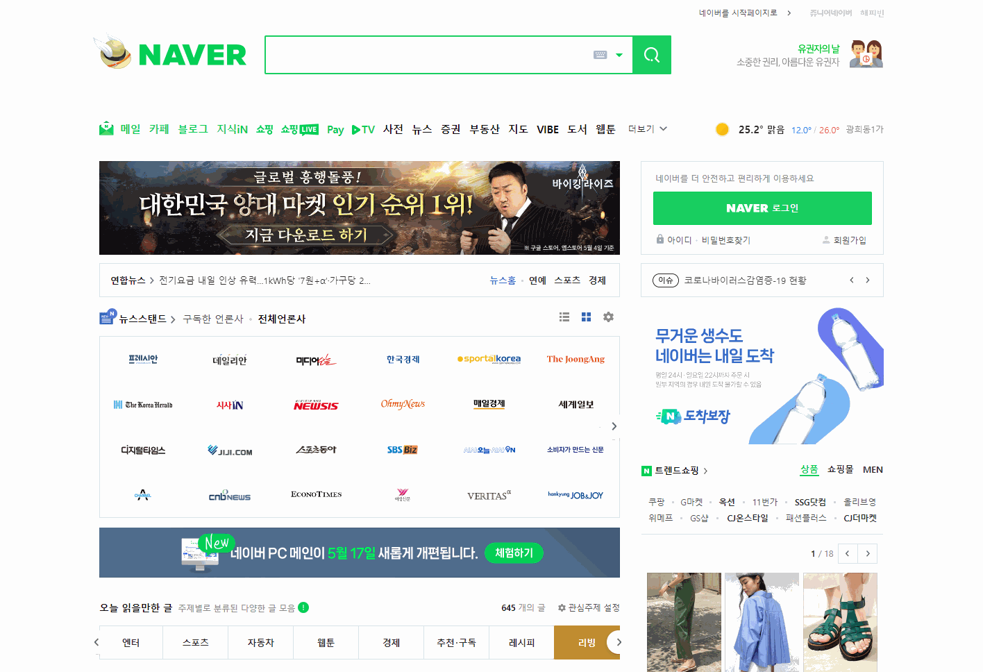 국내 웹 디자인 시장을 선도(...아마도?)하는 네이버 메인 디자인이 나왔다~