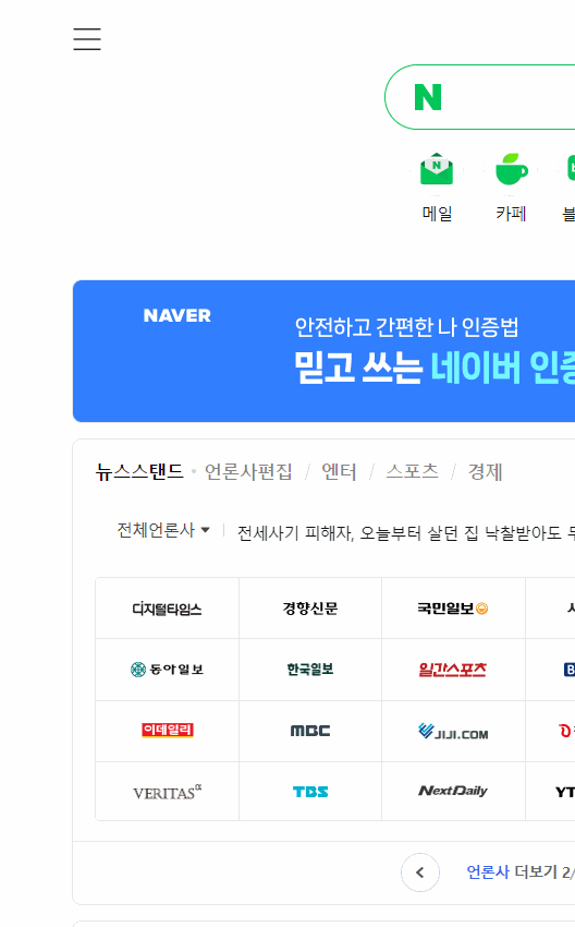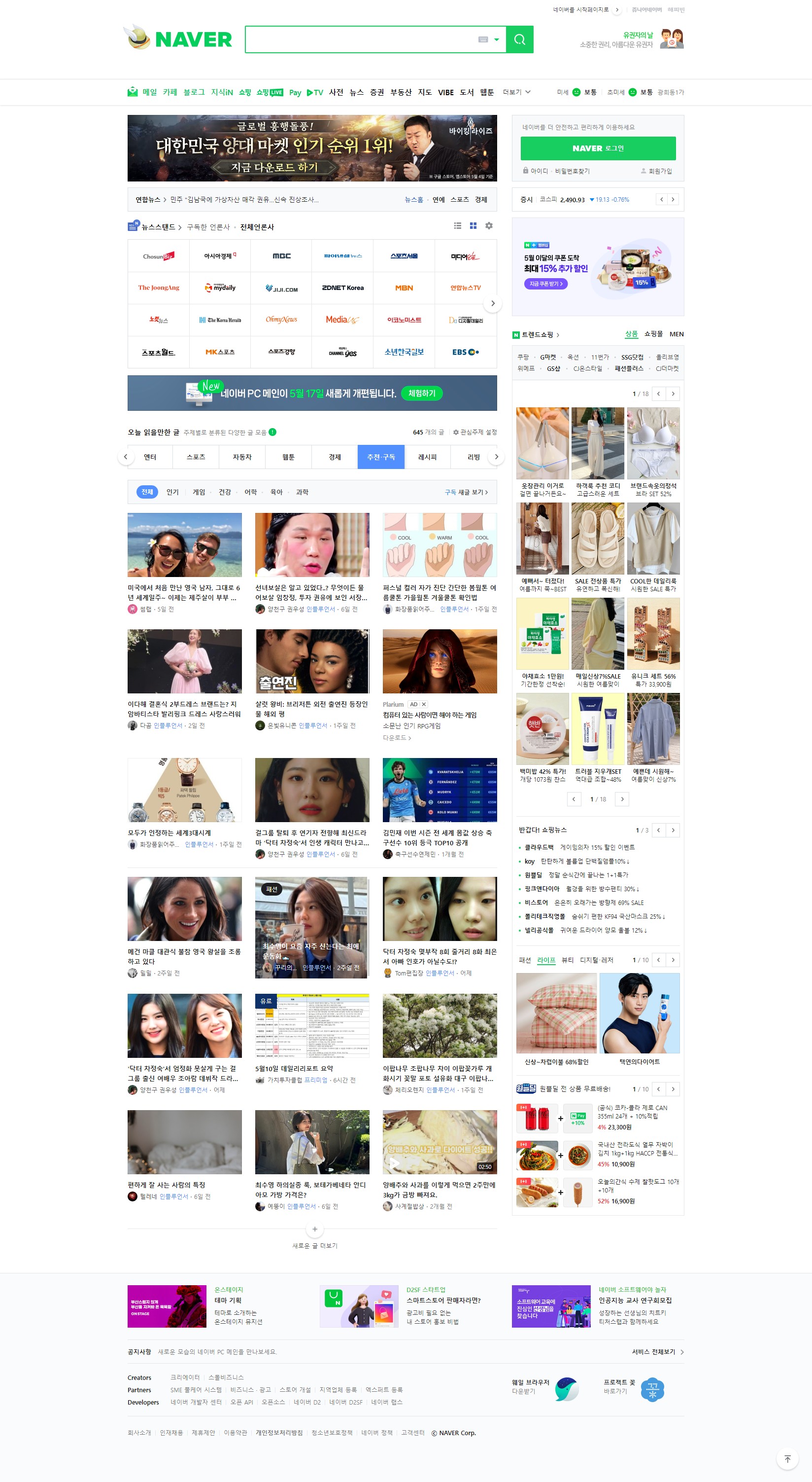 아무튼 그럼, 새로운 네이버메인에 구경 가보자~ ㅎㅁㅎ