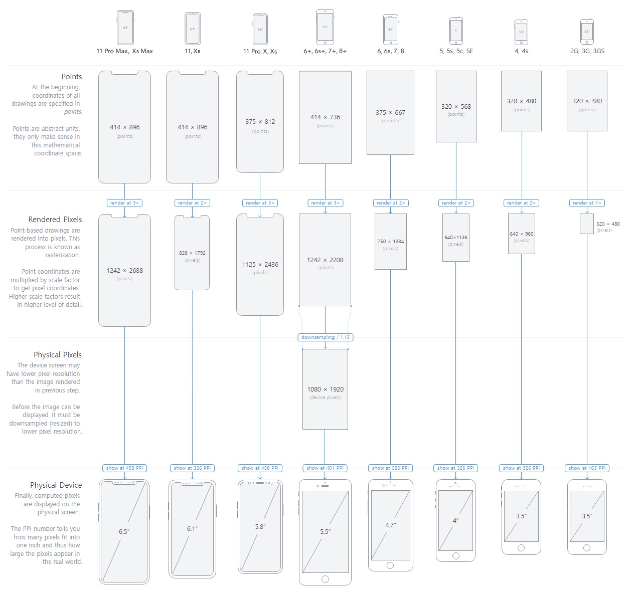 | 아이폰 X, XS, 11 Pro | 1125×2436 | 375×812 | Super Retina HD |