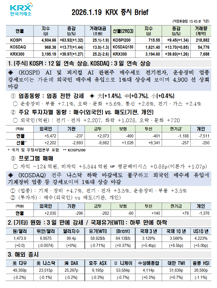 주식요약(26.01.19 월요일)