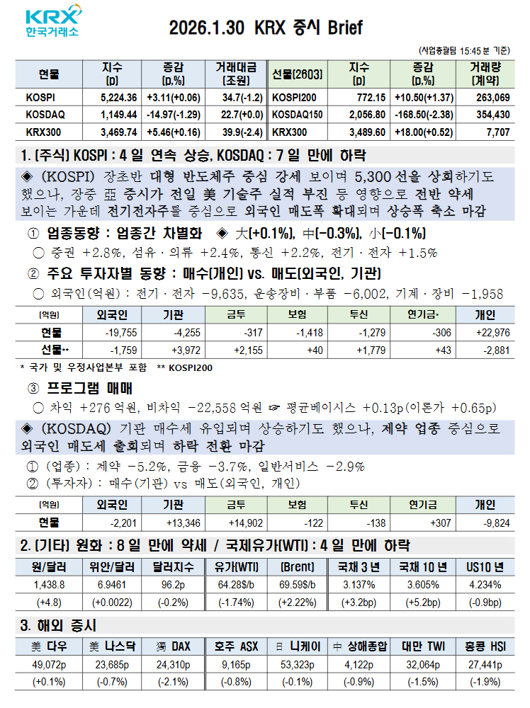 오늘의 주식(26.01.30 금요일)