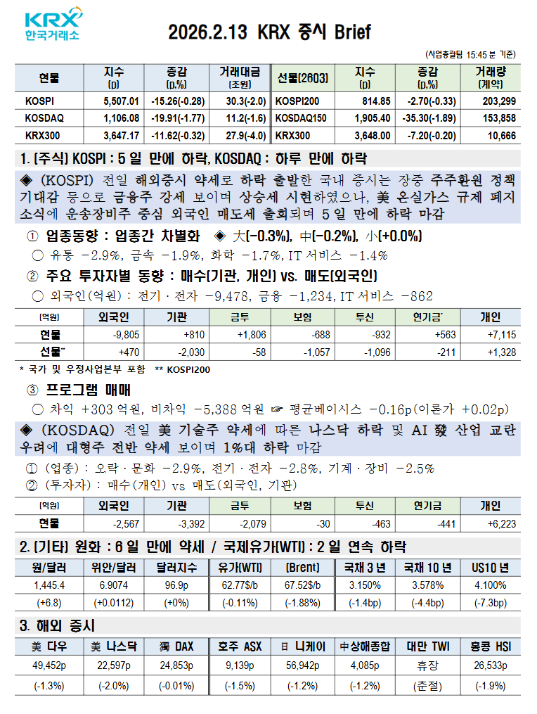 오늘의 주식(26.02.13 금요일)