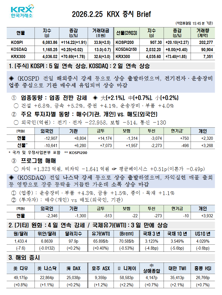 | [주식노트260226 / KPI+3.67% / KDAQ+1.97%] 코스피 사상 첫 6,300선 돌파... (0) | 2026.02.26 |